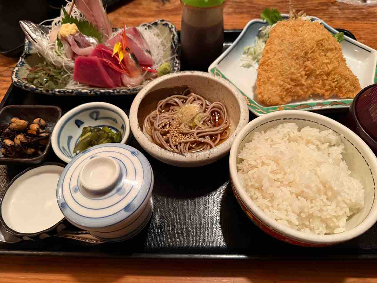 帰りはいつもの快飛でアジフライ定食を食べながら色々と歓談しました。いつもこれを食べています。お気に入りです。