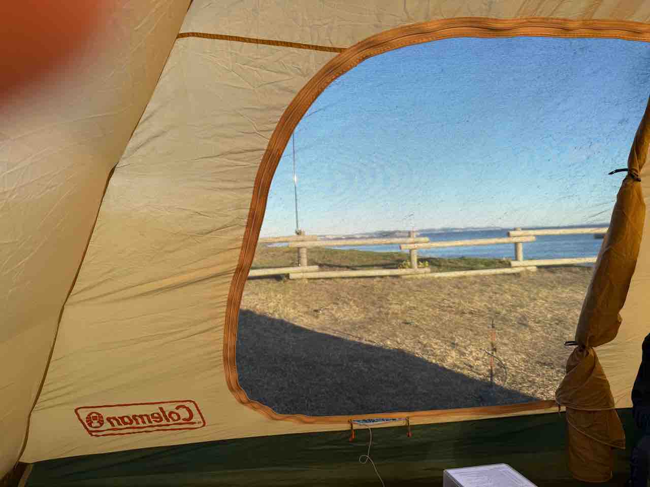 茅ヶ崎海岸は、今日はやや肌寒く、冬服を着込んできて正解でした。天気は良く、テントの中から海辺の風情を満喫しました。
